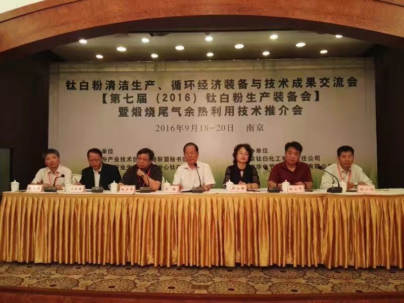 9月18-20日,钛白粉清洁生产、循环经济装备与技术成果交流会,暨第七届(2016)钛白粉生产装备会,于南京饭店顺利召开。本届大会,由国家化工行业生产力促进中心钛白分中心和钛白粉产业技术创新战略联盟主办,南京钛白化工有限责任公司和南京华电节能环保设备有限公司共同协办,近30家国内主要钛白粉生产厂商、以及与钛白粉相关的节能、环保、生产设备厂商参加了本次大会。南京钛白公司总经理彭安铮女士出席大会,并在主席台就座。
